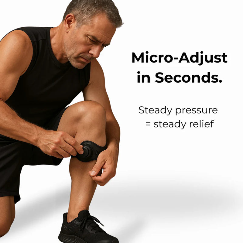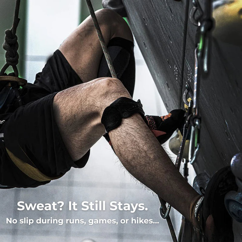 PatellaPro™ uses a soft-grip inner lining and adjustable straps to prevent slipping — even during sweat-heavy workouts. It’s designed to stay secure whether you’re sprinting, squatting or climbing stairs.
