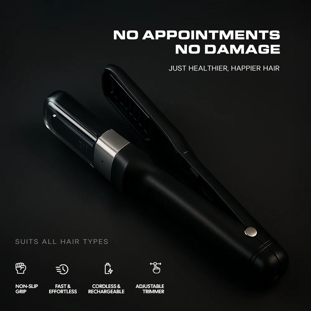 Salon-smooth ends at home in minutes. Trims splits, seals damage, and boosts shine—without cutting length. Cordless, travel-friendly, and works on all hair types. Your secret to healthier-looking hair between salon visits