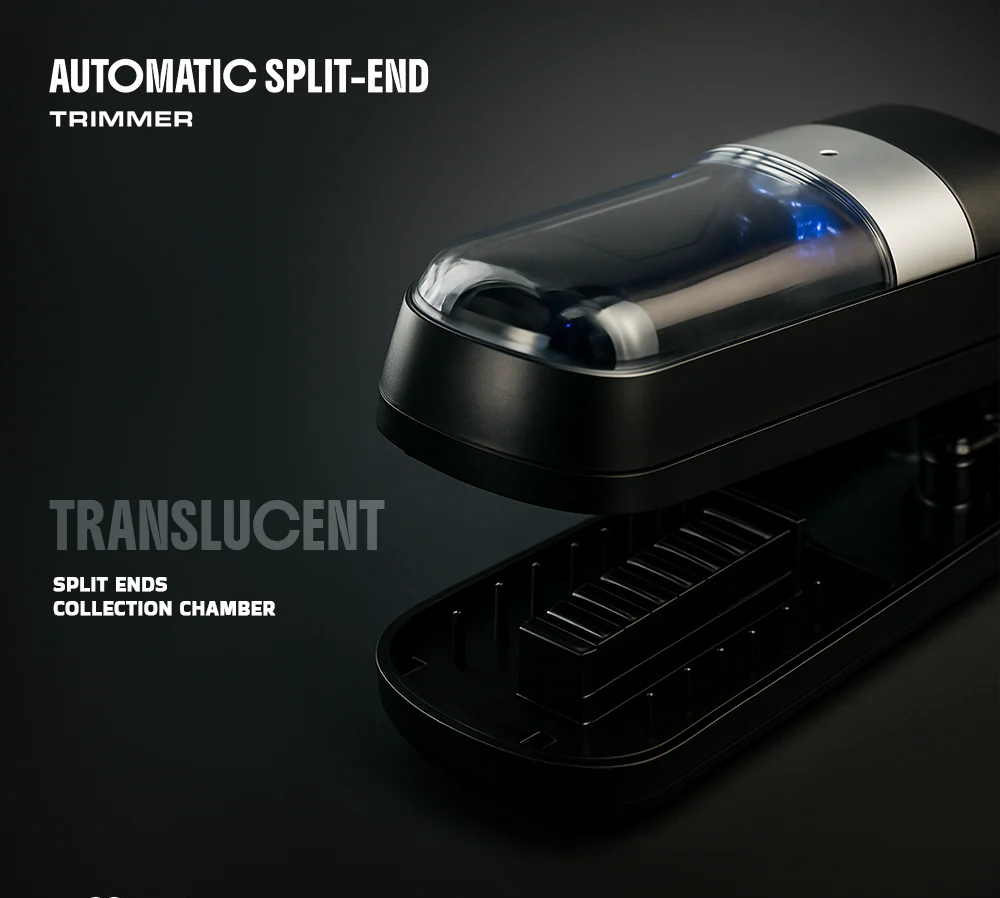 A split end trimmer is a specialized hair tool designed to trim only the damaged, split ends of your hair—without cutting length. It detects and snips the frayed tips as you glide it through sections of your hair.